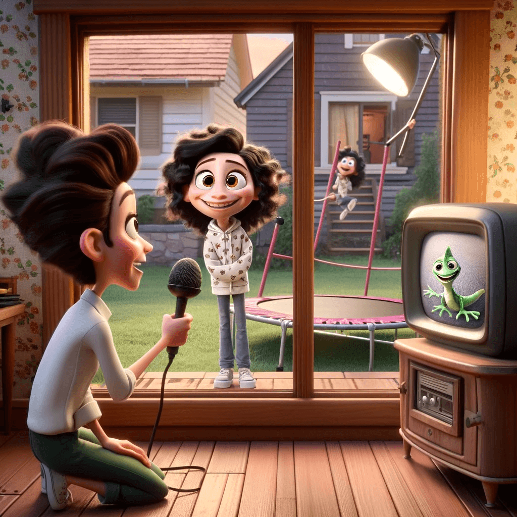 Now, Livvy, as a future Youtube sensation, was never going to pass up on the chance of a tv appearance, and made every effort to bounce as high as she could on the trampoline to make it into the background of the episode!